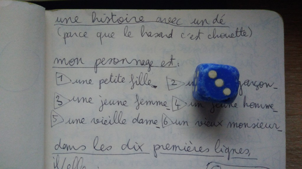 Dans la foulée de plusieurs recherches sur le hasard/ l’automatisation de l’art, j’avais imaginé ce générateur d’histoires, grâce auquel on peut laisser le dé décider de la structure d’une narration. Je l’ai utilisé pour écrire quelques nouvelles, puis j’ai juste généré plein de structures sans les étoffer, comme une banque d’histoires potentielles. J’ai enregistré ces micro-narrations et en ai fait une pièce sonore que voici :
