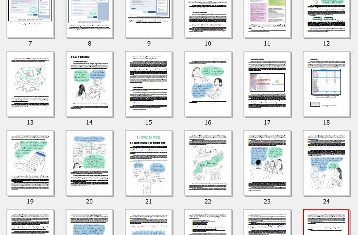 Le résultat est un document de 30 pages, illustré, et comportant deux grandes parties : l’intermittence (concrètement, comment commencer, la partie administrative, ce qu’il faut savoir avant de se lancer etc) et le monde du travail d’une manière générale (les abus qui peuvent exister, surtout lorsque l’on débute, comment reconnaître un environnement professionnel nocif, les symptômes du burn-out…)