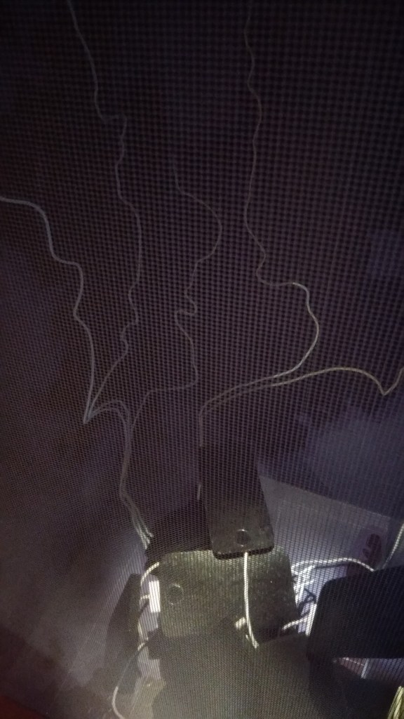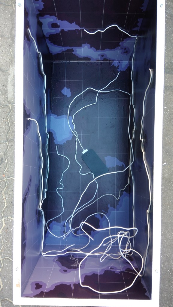 La niche des portables, en contexte dans l’expo. C’est une installation qui parle du lien tissé par smartphone interposé, en particulier pour les exilé.e.s qui les utilisent pour parler à leurs proches resté.e.s sur place, mais aussi pour écouter de la musique de leur pays, etc…