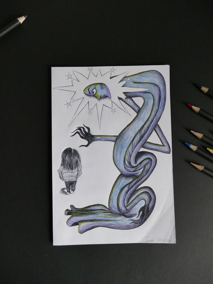 October 24, 2019September 4, 2022 Zoé Véricel Inktober 2019 #5 ma bonne étoile aux mains crochues, 14,2x21cm Related