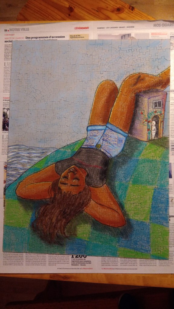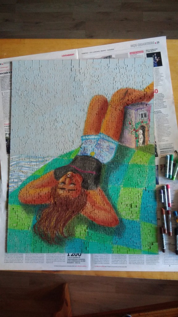 En période de confinement, on fait avec ce qu’on a. Alors quand on a déjà fait mille fois les puzzles de la maison, on se met à les retourner et à dessiner au dos, et hop ! Un nouveau puzzle.