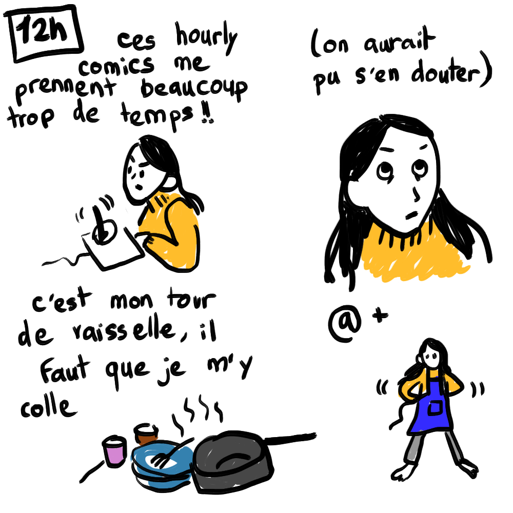 […] Hourly Comic Day ! Le principe, c’est de faire une petite BD par heure, sur toute une journée. Je l’avais déjà fait par le passé (sauf que j’avais loupé le coche du jour donc je l’avais fait un jour de […]