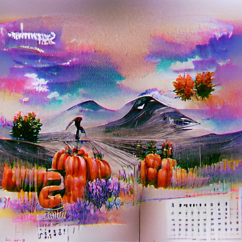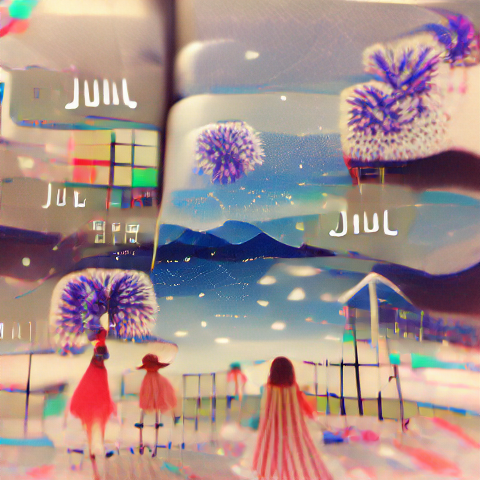 Ci-dessus, j’ai donné comme sujets les 12 mois de l’année. Quelque chose comme 500 itérations à chaque fois. J’aime beaucoup les résultats de juin, juillet et novembre. Parfois, comme inquiet qu’on ne le comprenne pas bien, l’algorithme écrit carrément le mot demandé dans l’image. Ça vient sûrement des calendriers.