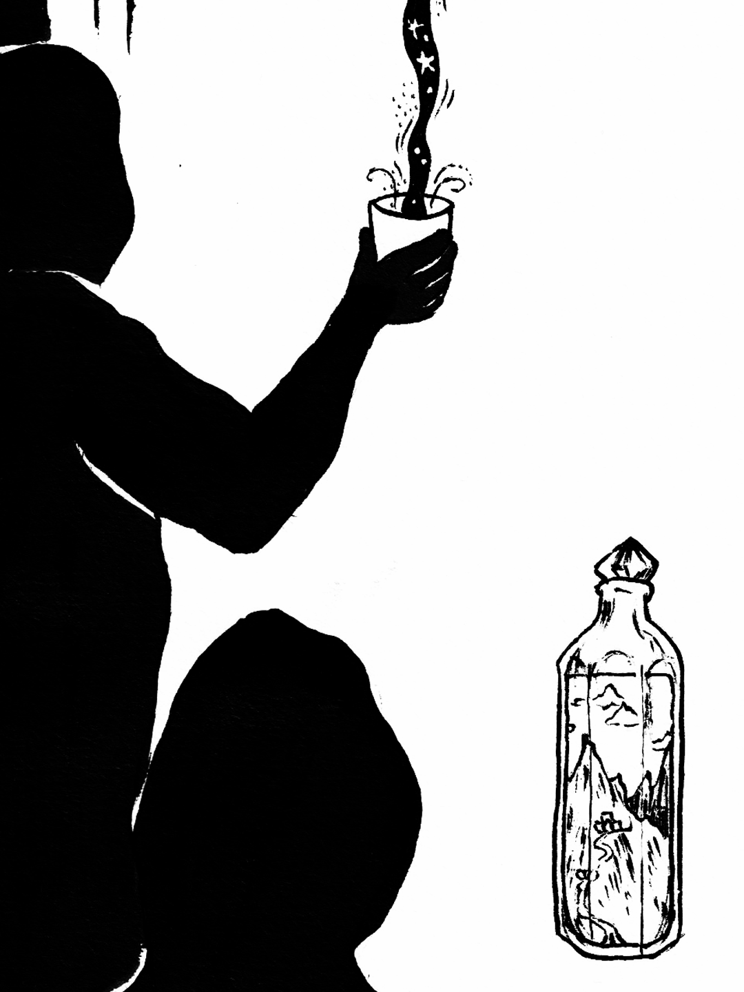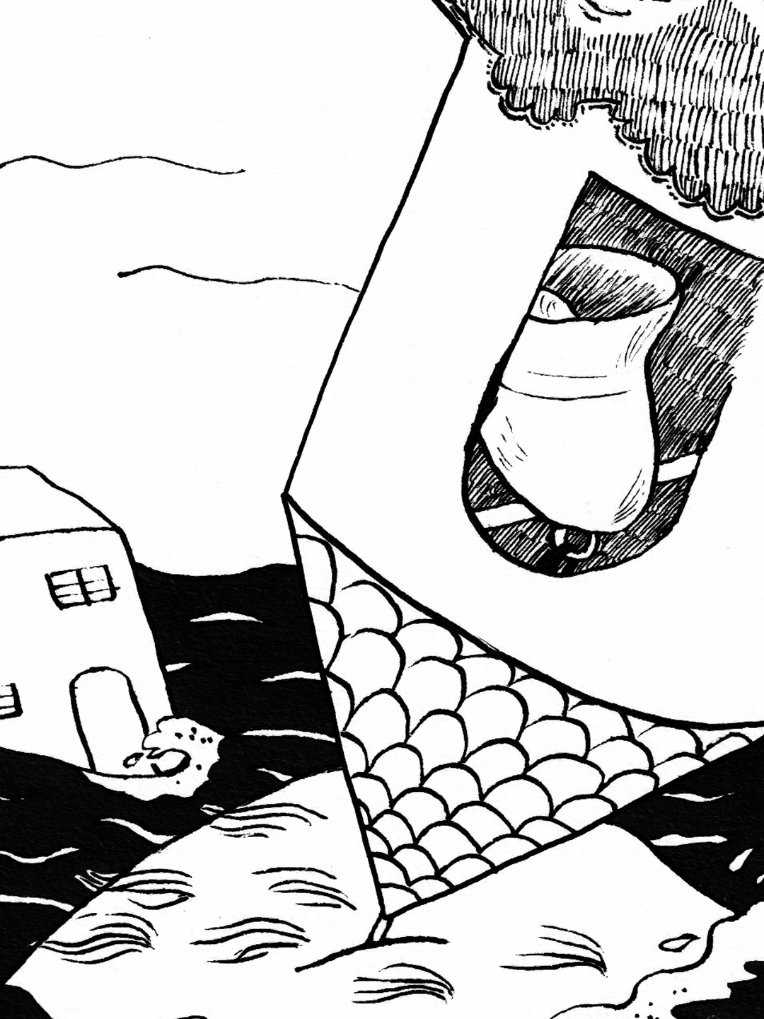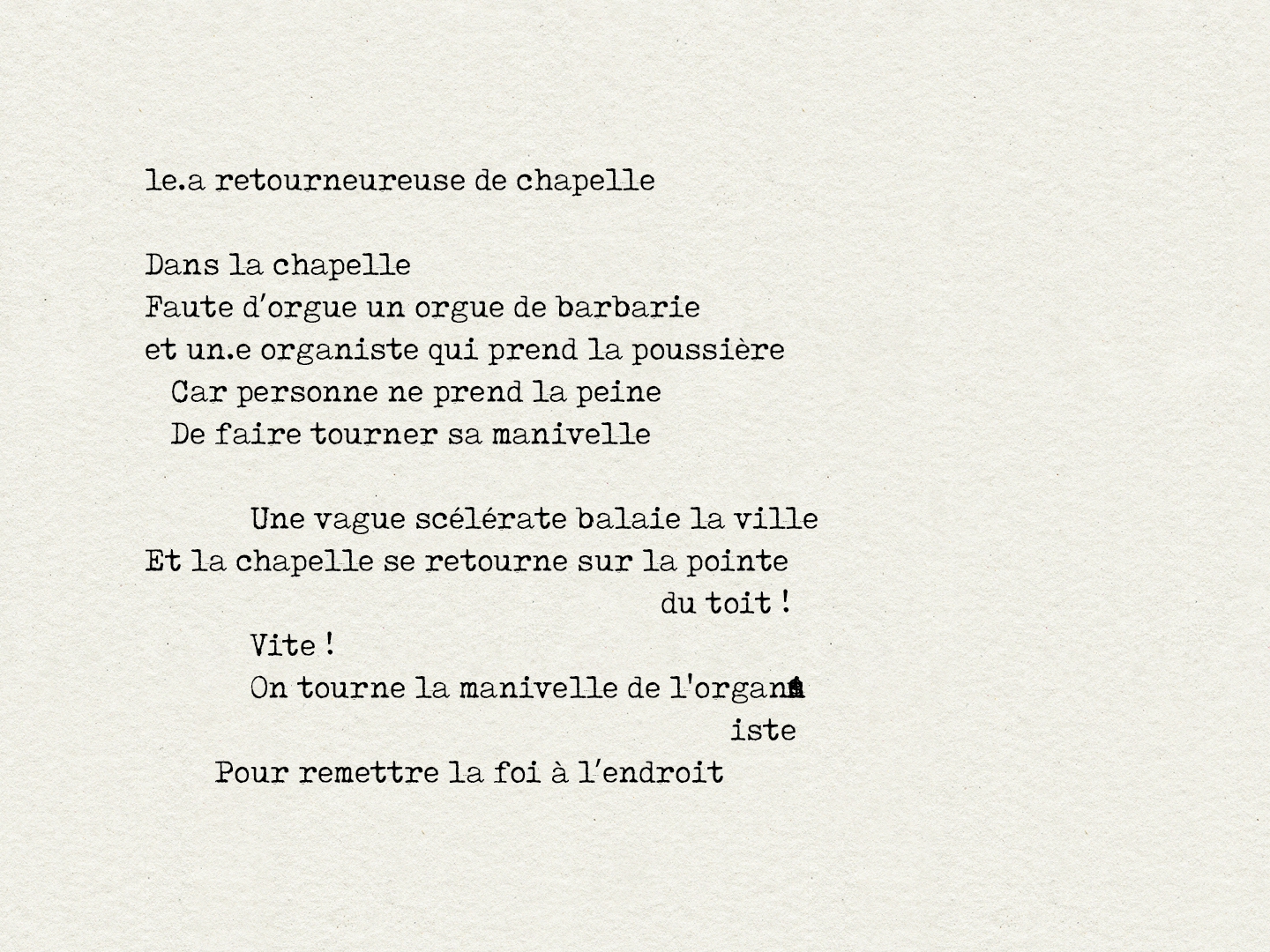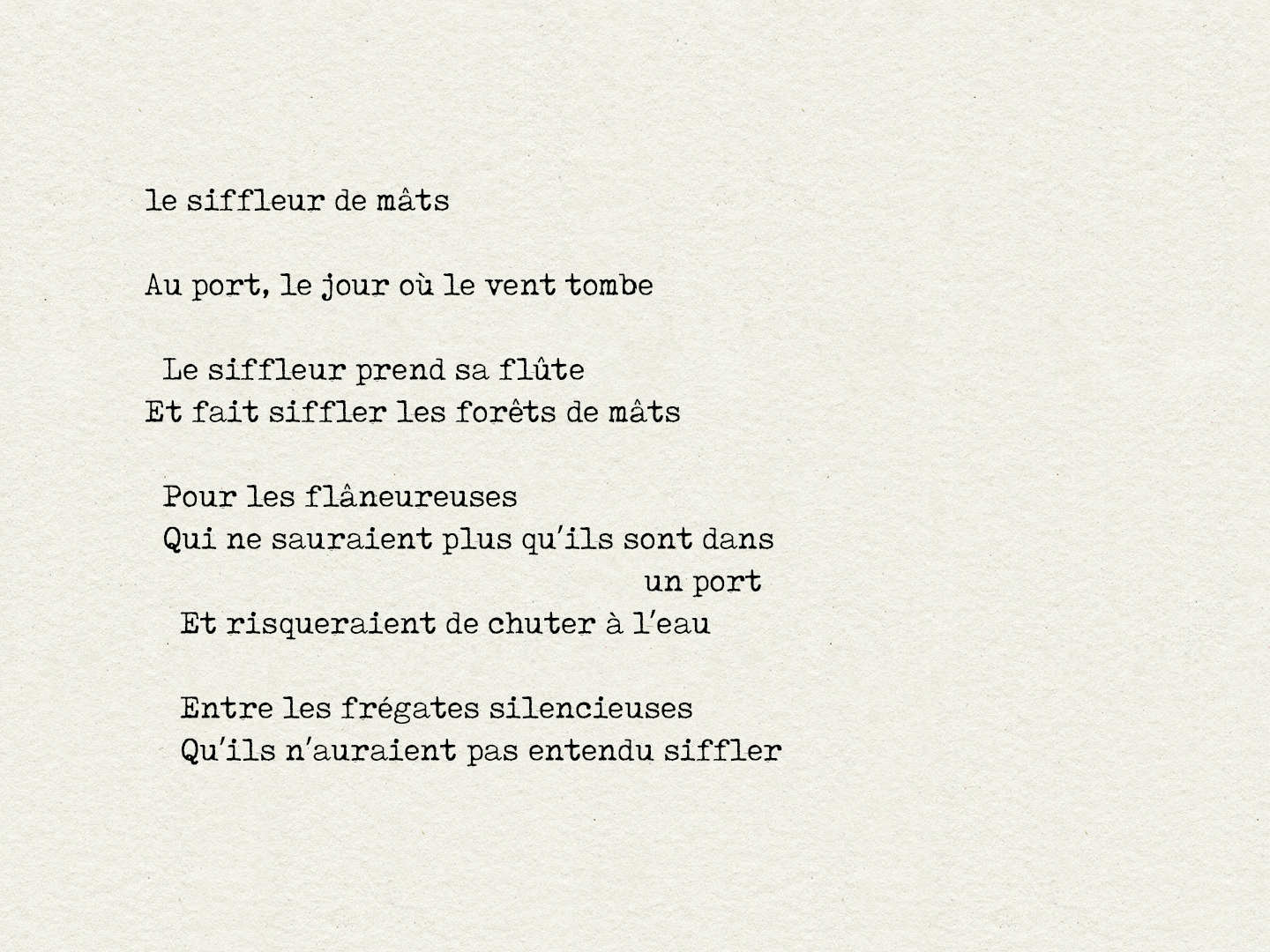 Les tombeuses de nuit, le siffleur de mâts, la compteuse de vagues… Autant de “métiers invisibles” pleins de poésie que Clémence a imaginés et tapés à la machine à écrire directement sur la feuille, avant que je dessine à l’encre de chine les illustrations autour de chaque texte.