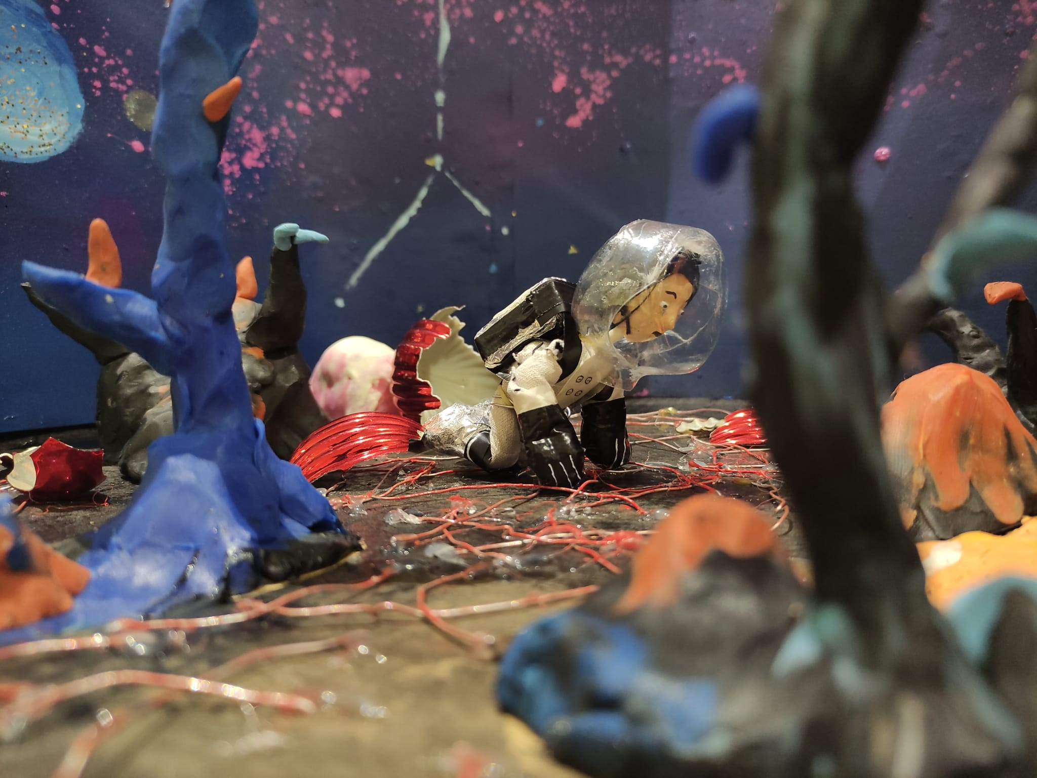 Résultat un WE avec beaucoup d’idées, très peu de sommeil, des montagnes de pizzas, de très chouettes rencontres et des exports à la dernière minute. On a imaginé ce‧tte petit‧e astronaute qui a un accident de fusée. Deux personnes ont fait le décor, quelqu’un d’autre la séquence en papier découpé du début, et moi la marionette de l’astronaute en question ! Pour l’animation on s’y est collé‧e‧s tou‧te‧s ensemble.
